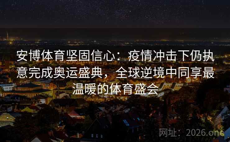 在2020年,一场突如其来的全球疫情,让世界陷入前所未有的危机之中。各国经济停滞,人民生活受到严重影响,国际赛事被迫延期或取消。在这样的逆境中,东京奥运会却选择了“如期而至”。这不仅是对体育精神的坚守,更是对人类意志力与团结精神的一次巨大考验。安博体育,作为一家长期支持体育事业的品牌,深知这场盛会的意义。在疫情的冲击下,安博体育依然坚定信念,支持奥运,用实际行动传递了体育的力量与温暖。